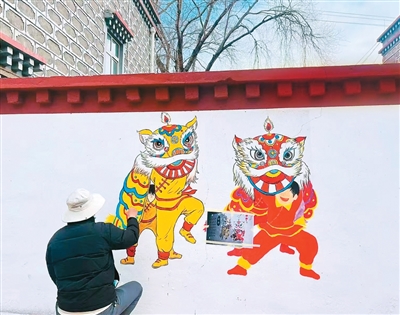 硕督镇硕督村,匠人正在绘制狮子舞墙画。
