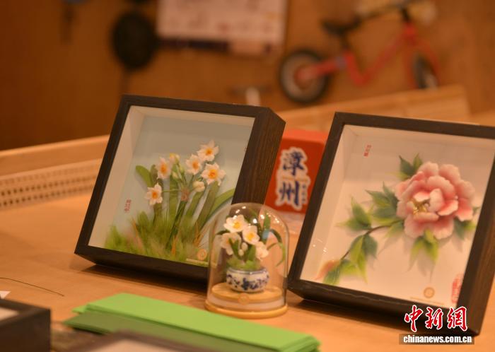 “我在传统技法上进行创新,在棉花中掺入绒线,使棉花画的亮度、色彩更胜一筹,还将中国画、雕塑等巧妙融入创作,凸显棉花画立体感,造型更活灵活现。”郭美瑜的大胆创新效果很好,作品受到市场和业内肯定,“棉花画焕新颜后,吸引众多海外漳州籍华侨华人购买,并借此进入新加坡、韩国、菲律宾、马来西亚等国家。”