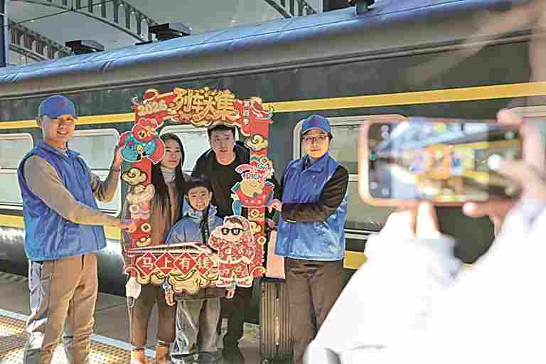 今年,我们还添了不少贴心新花样。餐车推出十元一份的酸菜炖粉条,热乎又实在;车厢里设了直播角,电商达人对着镜头讲黑土地农产品的种植故事、山货的采摘过程,直播间里互动不停;民族服饰巡游活动中,鄂伦春族、朝鲜族的特色服饰轮番亮相,旅客们纷纷举起手机,用镜头定格这份独特的东北年味。