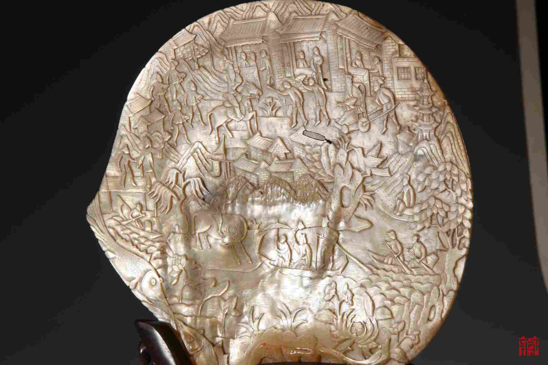 △贝雕人物集市图摆件(背面) 广东省博物馆藏
