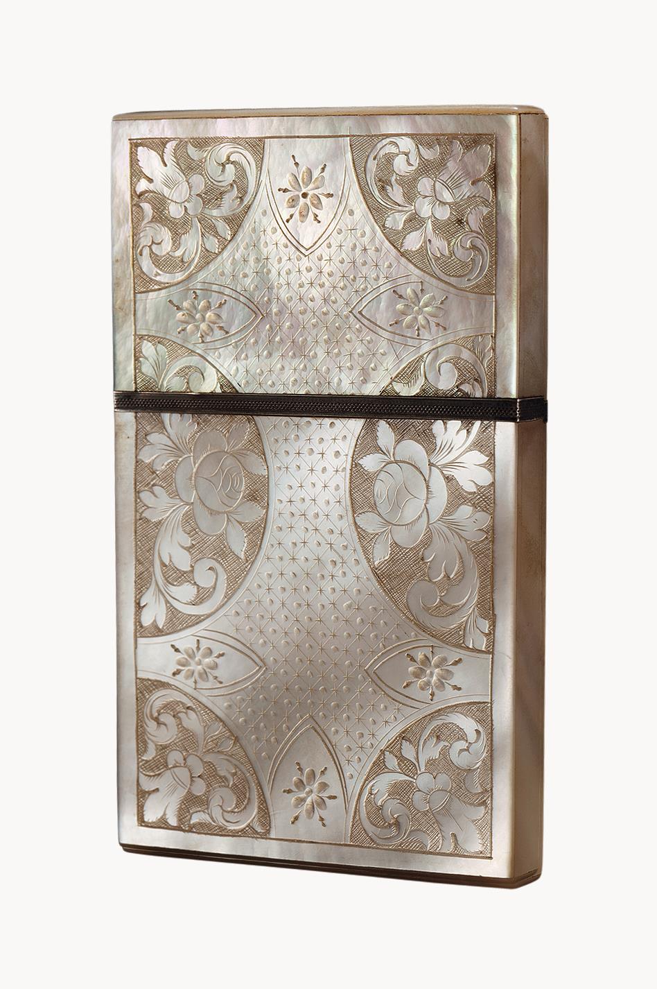 △清 贝雕西洋花卉纹镶银边名片盒 广东省博物馆藏