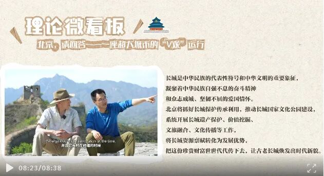 9月23日,“全国文化中心建设2024年度十件大事”发布,其中涵盖文化遗产保护、文物活化利用等多项内容,北京打造长城保护实践新样本入选。2024年5月14日,习近平总书记给北京市延庆区八达岭镇石峡村乡亲们回信,强调“像守护家园一样守护好长城,弘扬长城文化”。北京市坚决贯彻落实总书记回信精神,在守护长城遗产方面,扎实开展长城保护条例立法、大力推进中国长城博物馆建设、实施长城国家文化公园(北京段)建设保护三年行动计划、建设长城资源信息及监测预警平台;在弘扬长城文化方面,努力发掘蕴含其中的自强不息、众志成城、坚韧不屈、守望和平的精神内核,更好让文化遗产焕发时代价值、体现时代新风。接下来,让我们共同了解北京长城保护实践的新篇章吧!