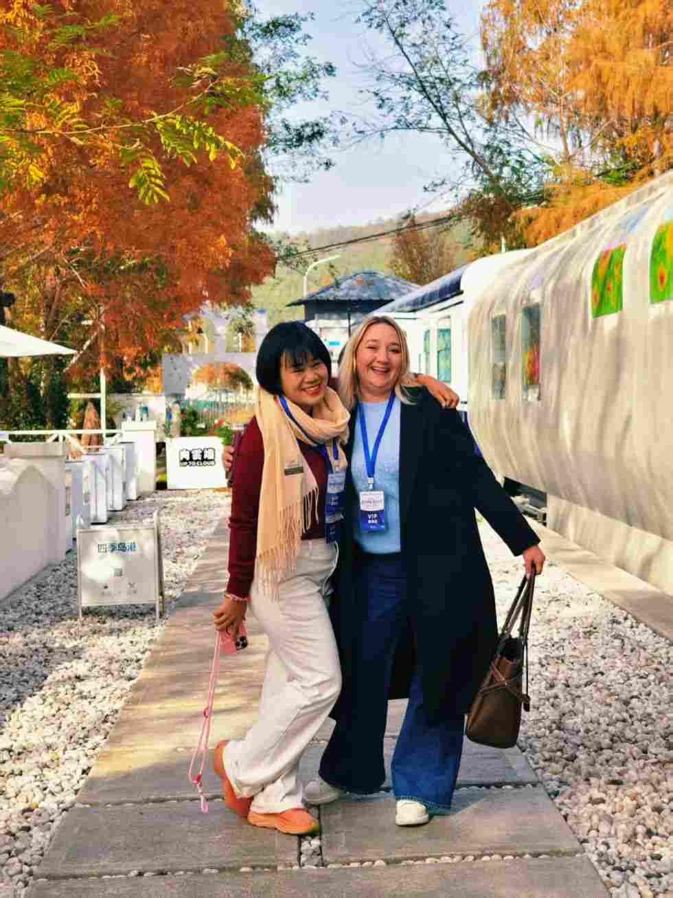 网红博主在向云端 世界观光列车微公园合影留念 摄影赵博