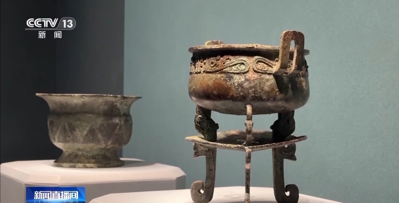 山西博物院讲解员刘琳:在上方鼎的部分是用来盛放肉食的,而中间一层的托盘是用来盛放木炭,托盘上有三个十字形的镂孔,能起到很好的通风助燃以及把炭灰漏下去的效果。
