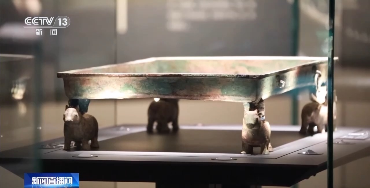 山西博物院讲解员杨柳:炭炉是古人非常常用的一种取暖设备,早在2500年前的战国时期,就已经出现了青铜炭炉。夔龙纹方盘,根据它的体量和结构判断,很可能就是当时一件兼具了华美造型和实用功能的炭炉。