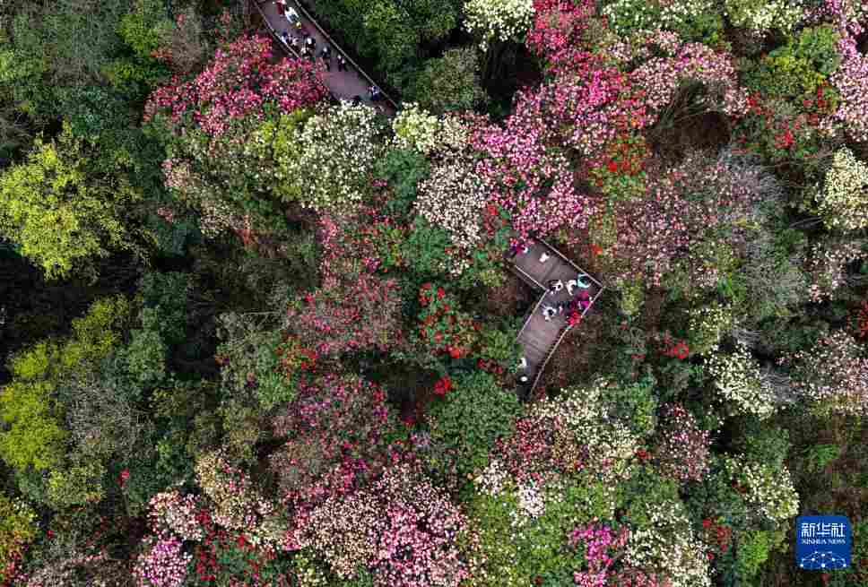 “几日春风又春雨,杜鹃依旧映山红。”这是清代阮元描绘杜鹃花的诗句。近日,贵州省毕节市百里杜鹃管理区内的杜鹃花迎来盛花期。