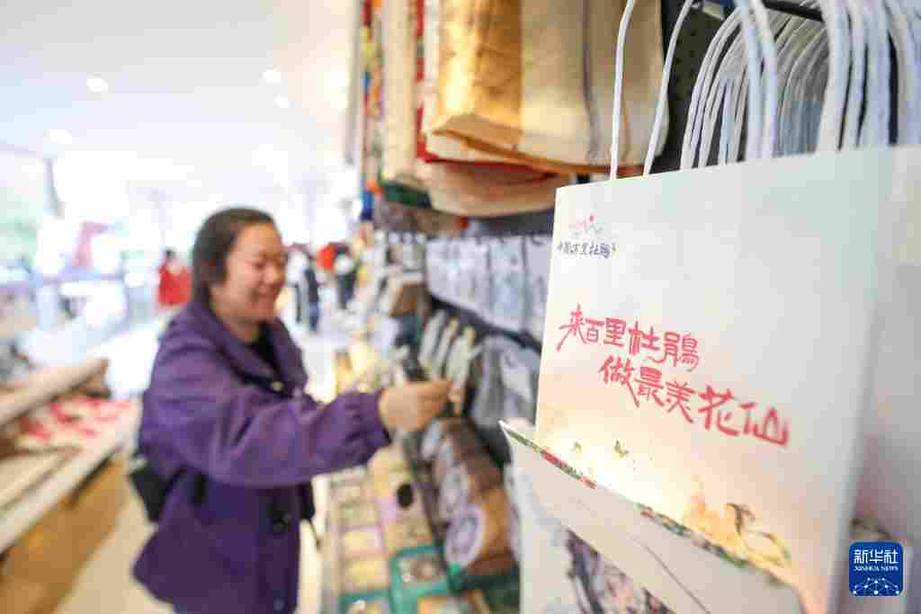 3月28日,游客在百里杜鹃管理区金坡景区花仙能量补给站内选购文创产品。