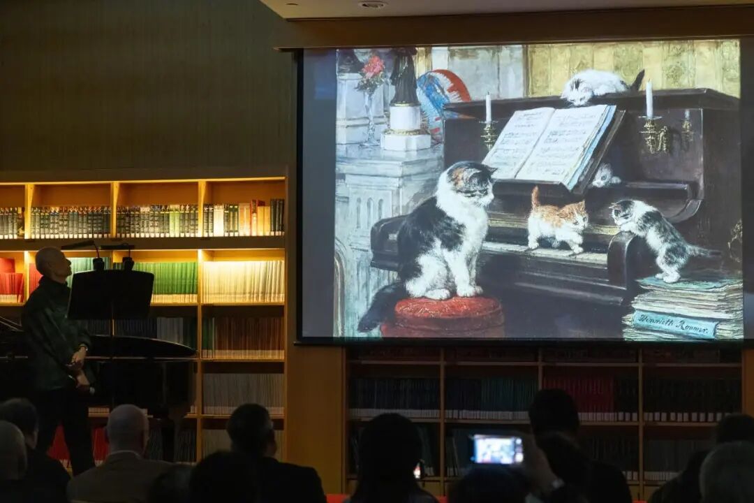 荷兰画家罗纳-克尼普笔下猫咪嬉戏的《钢琴课》,与美国作曲家安德森轻快的《跳华尔兹的小猫》相映成趣;印象派绘画大师雷诺阿温柔描绘的《小艾琳》亚麻色秀发,与德彪西朦胧梦幻的钢琴曲《亚麻色头发的少女》交织出光影的诗意;莫奈描绘工业时代的《圣拉扎尔火车站》与作曲家伦拜欢快的《哥本哈根铁路公司加洛普》形成时空对话......