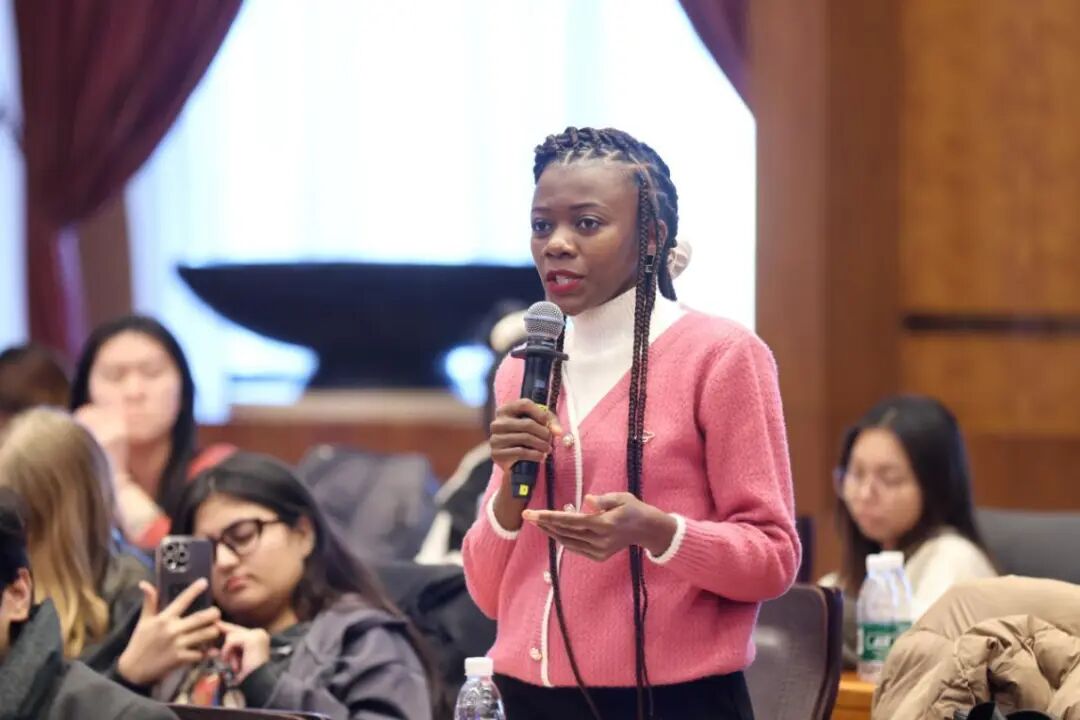 互动交流中,学生们围绕“文化遗产数字化”“ 文化遗产保护的国际合作”“AI在文化遗产传播中的作用”等话题,向专家踊跃提问、积极探讨,展现出对文博领域的关注与思考。
