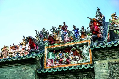 广州荔湾区陈家祠屋脊上的陶塑。荔湾融媒供图