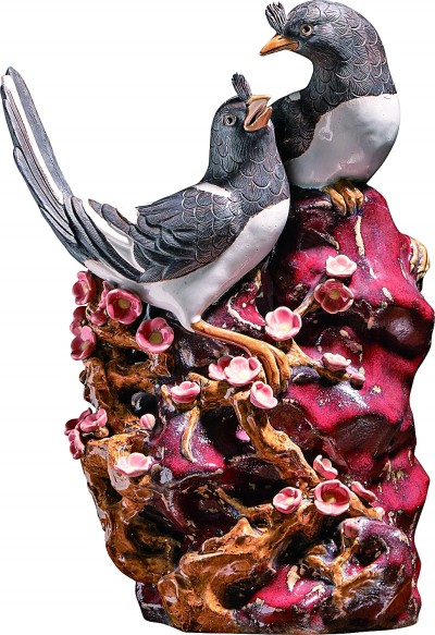 动物题材石湾陶塑作品。田云峰摄